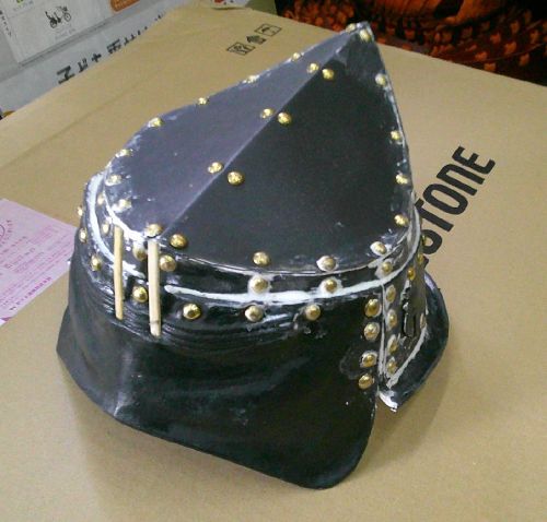 雑賀鉢ですが、メットに張り付けるのではなく、組み立てることに。前回の雑賀鉢は大きくてバランスが悪かったので、メットに沿った大きさにすることが大変でした。