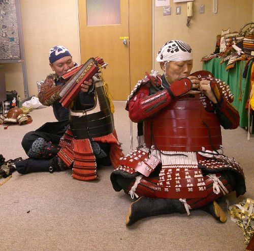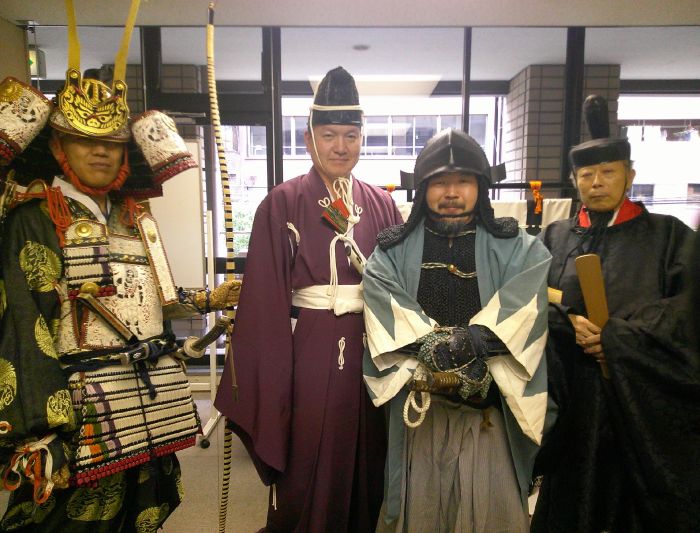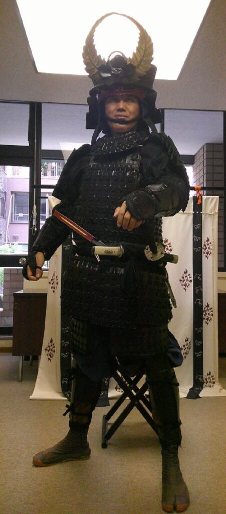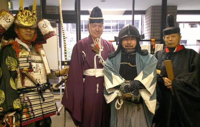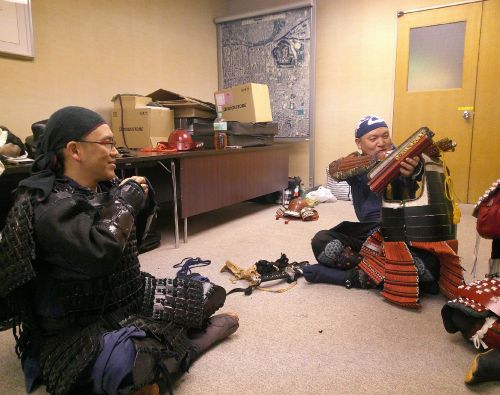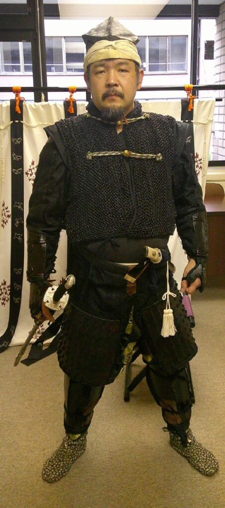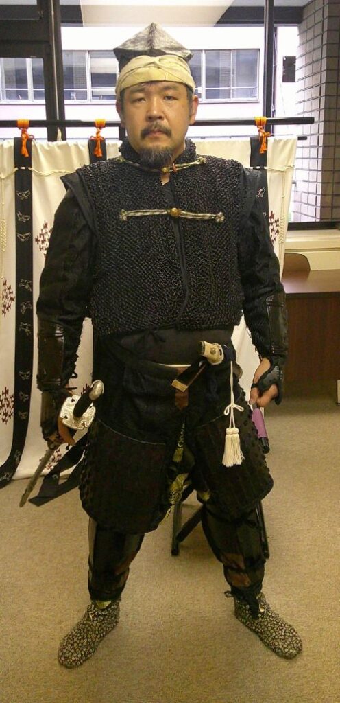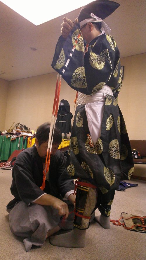 侍所(活動記録) 特集 第24回着付け講習会 2025年9月25日2025年12月30日 ikkai 0件のコメント 今回の講習会は特別に中央会館で会議室を借りて催しました。 受講生は甲冑教室に参加の真下さんとIさん、甲援隊から矢舞さんと山本さんです。 目的の一つは真下さんの卒業イベント・・・ということにしようと考えていたのですが、間に合わなかったです^^; もう一つは山本さん強化策で、こちらはしっかりと勉強していただきました。 内容は甲冑の着付け、大鎧や腹巻、衣冠、長袴の体験会です。そして新作?の落ち武者まげと鎧帷子の試着会です。 希望者があれば、また開催してみたいと思います。
