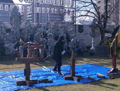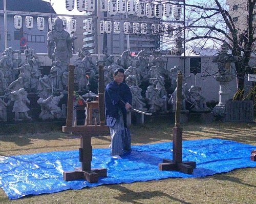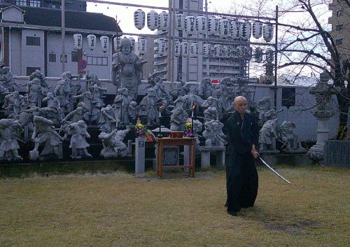 天王寺の吉祥寺さんでは義士祭りが催されており、まずは見学です。居合などを見て、四天王寺へ。