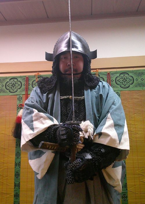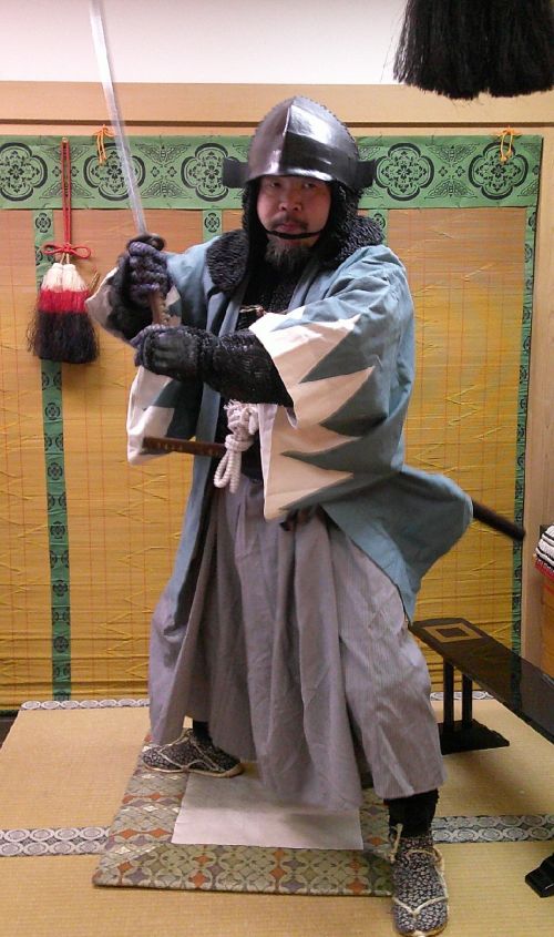 最初は長袴をと考えていたのですが、ちょっとめんどくさくなったので変更。鎖帷子一式も完成し、「討ち入り」ということで、新選組近藤勇バージョンに。